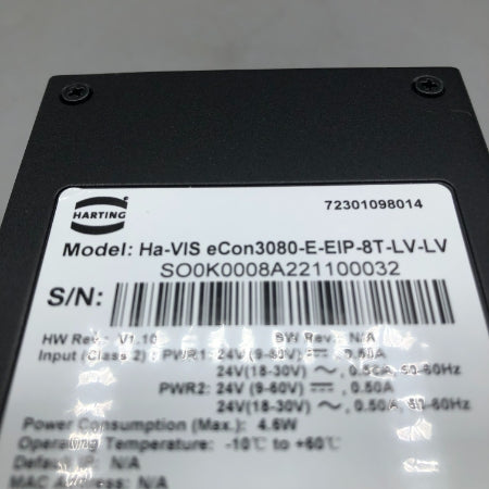 HARTING 産業用イーサネットスイッチ Ha-VIS eCon3080-E-EIP-8T-LV-LV 7230 109 8014